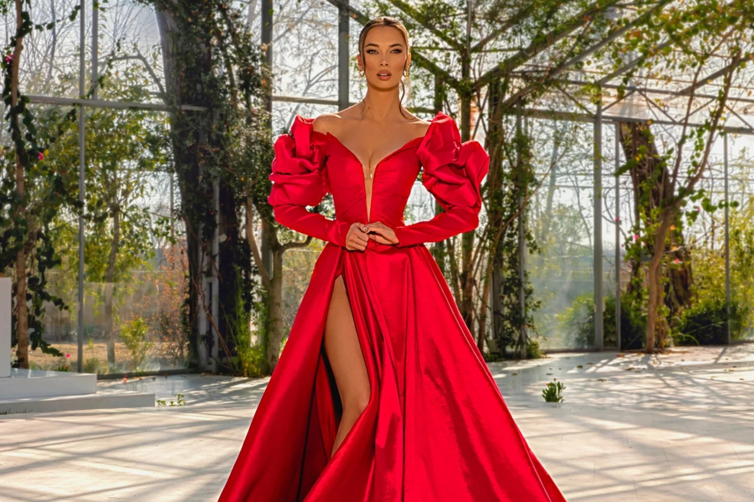 Rochiile din catifea, satin sau mătase oferă un aer sofisticat, iar detaliile rafinate – decolteuri adânci sau spate gol – adaugă echilibru între senzual și rafinat.